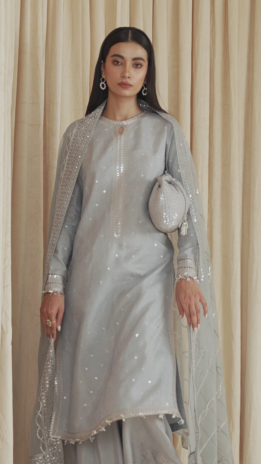This exquisite Embroidered Raw Silk UR-7006 features luxurious Korean raw silk material, adorned with beautiful embroidery on the front and sleeves. The intricate embroidery also graces the front and back borders, as well as the sleeves border, adding a touch of elegance. The set is completed with a dyed raw silk back and a matching embroidered organza dupatta. Elevate your wardrobe with this expertly crafted ensemble.