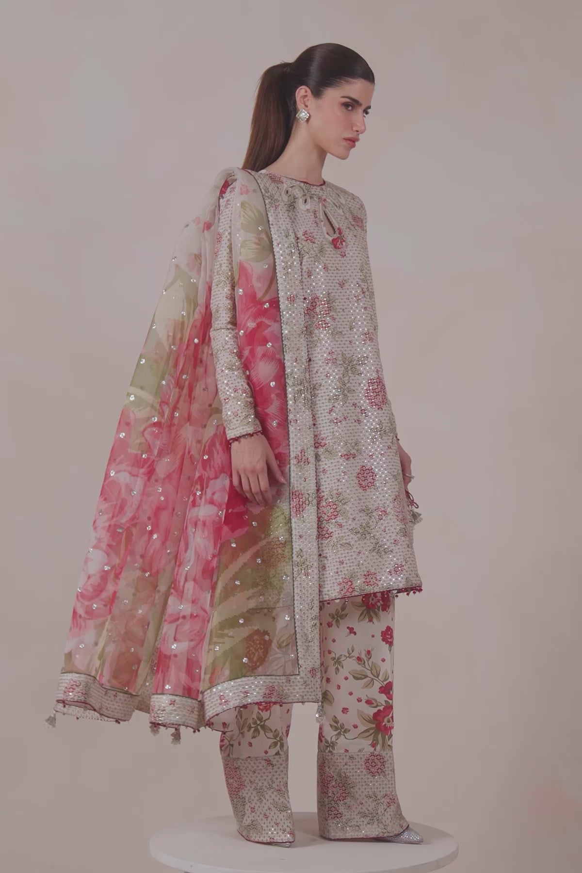 Introducing our Premium Embroidered Raw Silk UR-7034. This set features a digital printed embroidered polyester Raw silk front, sleeves, and back, along with a digital printed embroidered polyester Raw silk trouser. Complete the look with a digital printed organza dupatta and detailed embroidered border. Elevate your wardrobe with this elegant and versatile set.