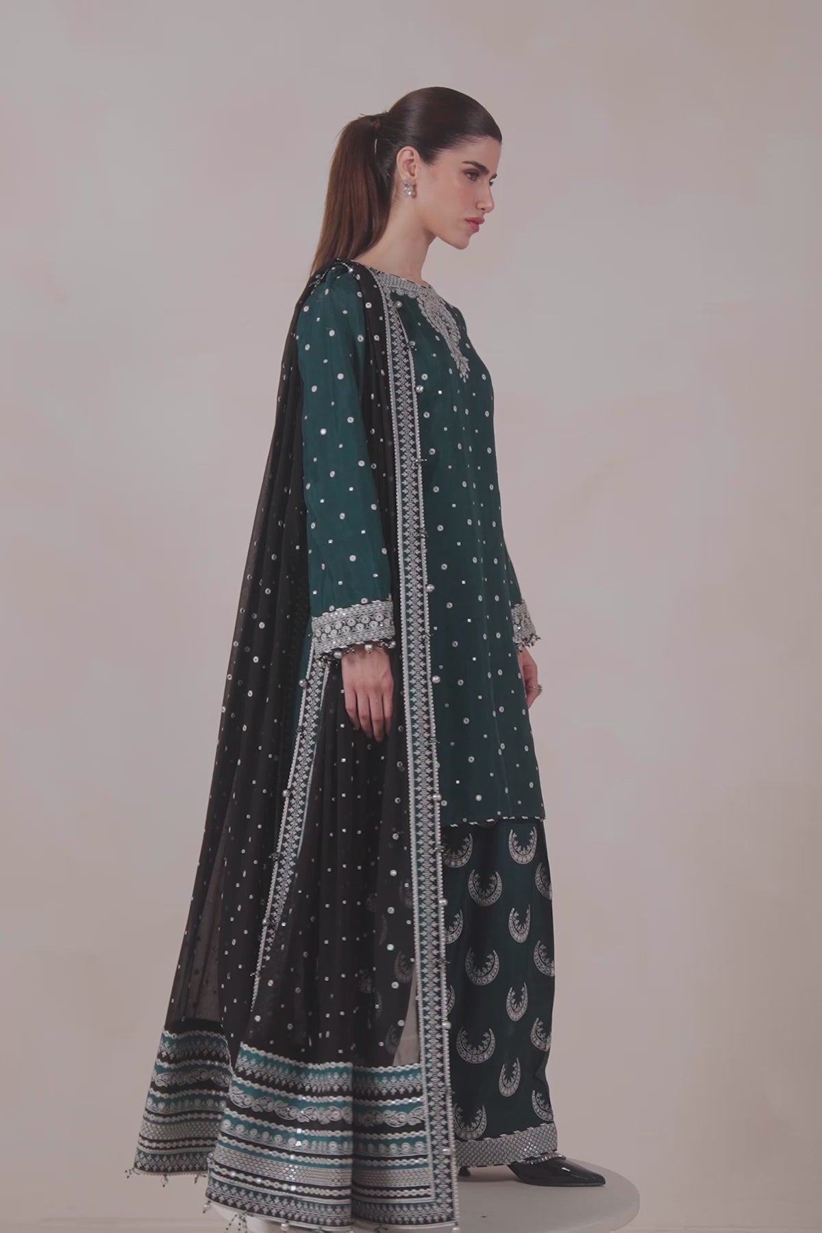 Introducing the Premium Embroidered Raw Silk UR-7035, a luxurious ensemble featuring embroidered Korean rawsilk on the front, sleeves, and trouser. The georgette chiffon dupatta and borders are also beautifully embroidered, adding a touch of elegance. With a dyed Korean rawsilk back, this ensemble is perfect for a formal occasion.