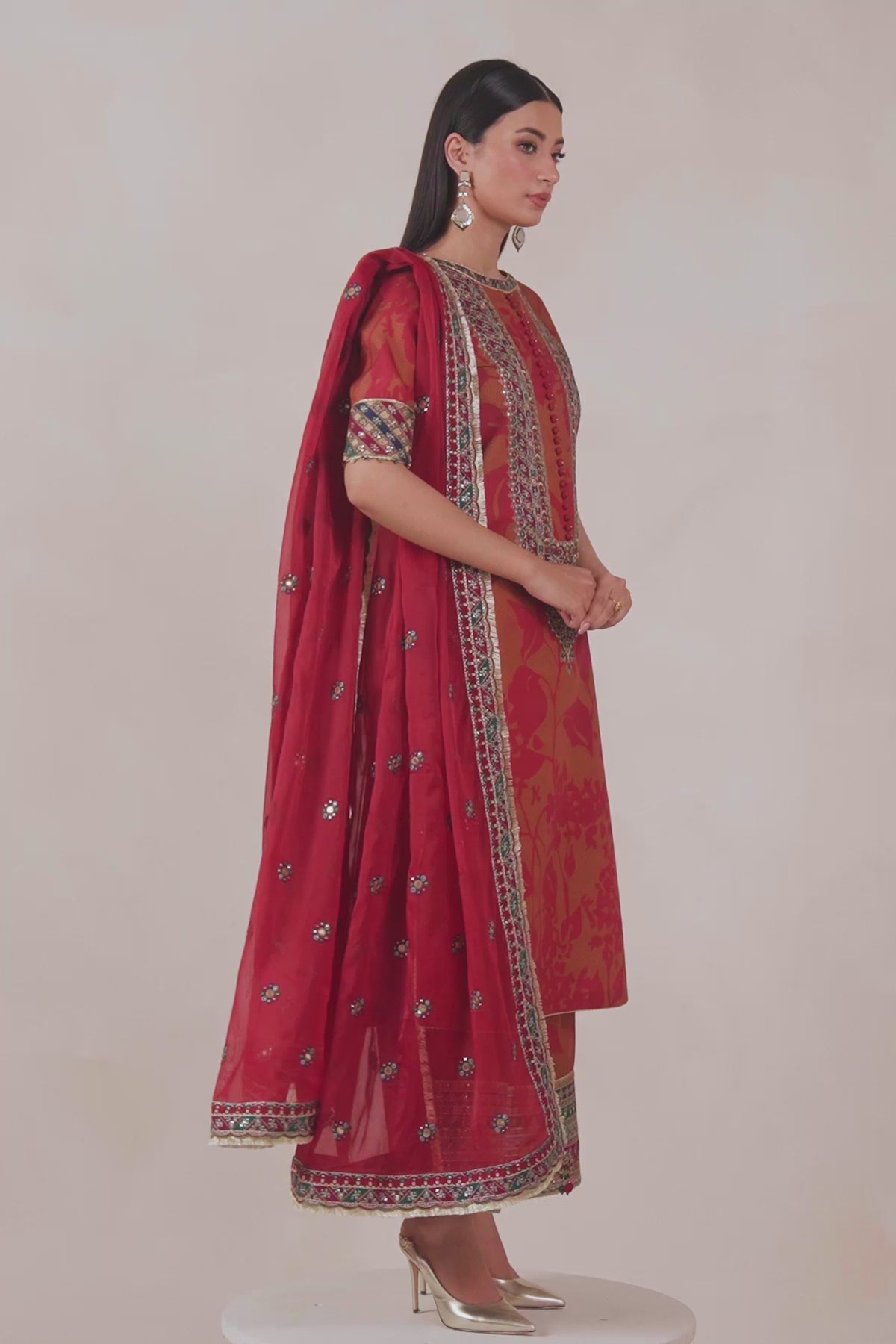 Elevate your wardrobe with our Premium Embroidered Raw Silk UR-7044. Made with high-quality Korean Rawsilk, each piece features intricate digital printing and embroidery, including on the sleeves and trousers. The luxurious organza dupatta and border add a touch of elegance. Unleash your style with the digital printed rawsilk back.